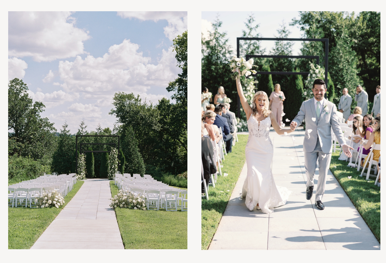 A beautiful outdoor ceremony with white floral decor, we’re obsessed with this classic look.